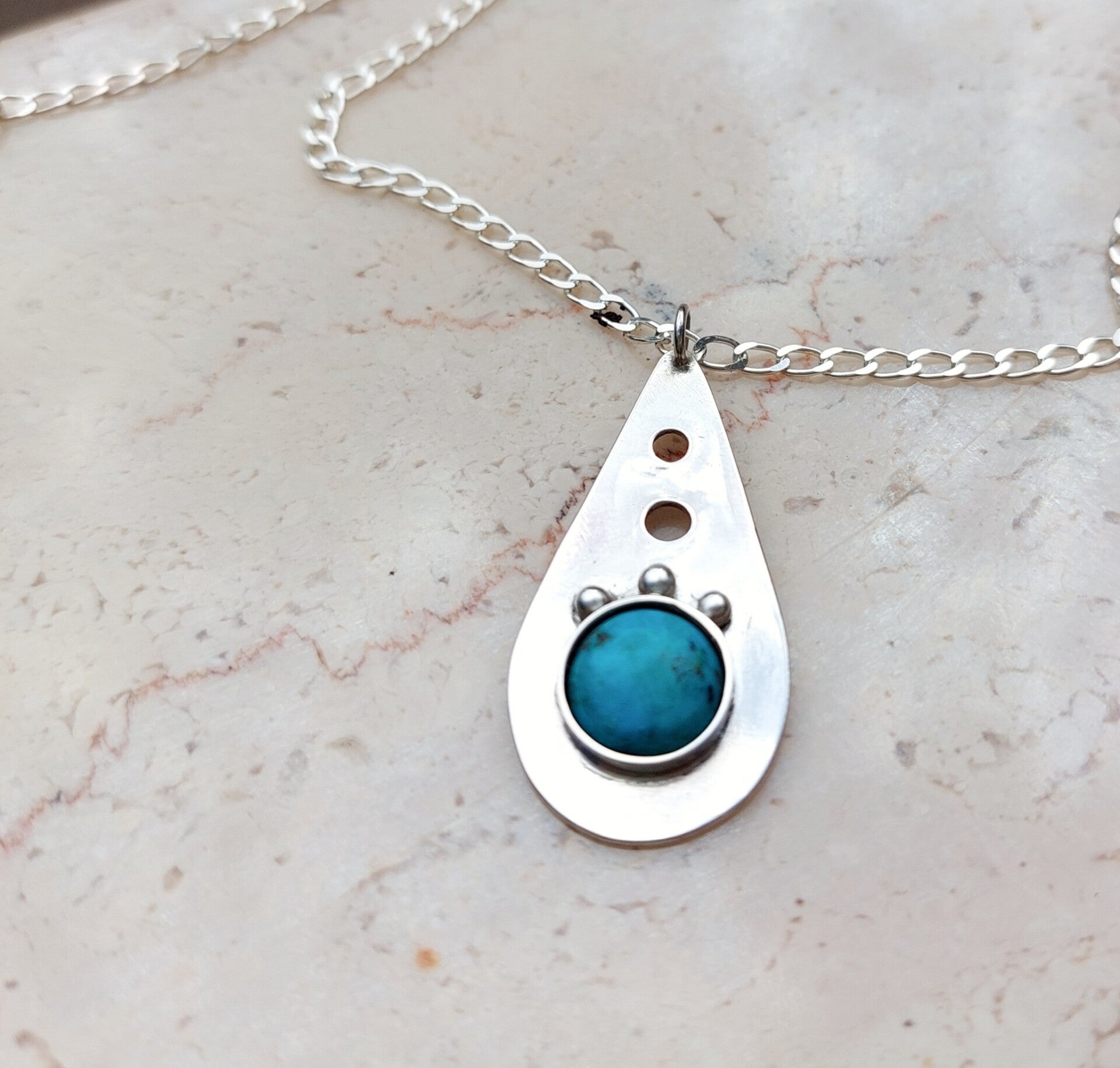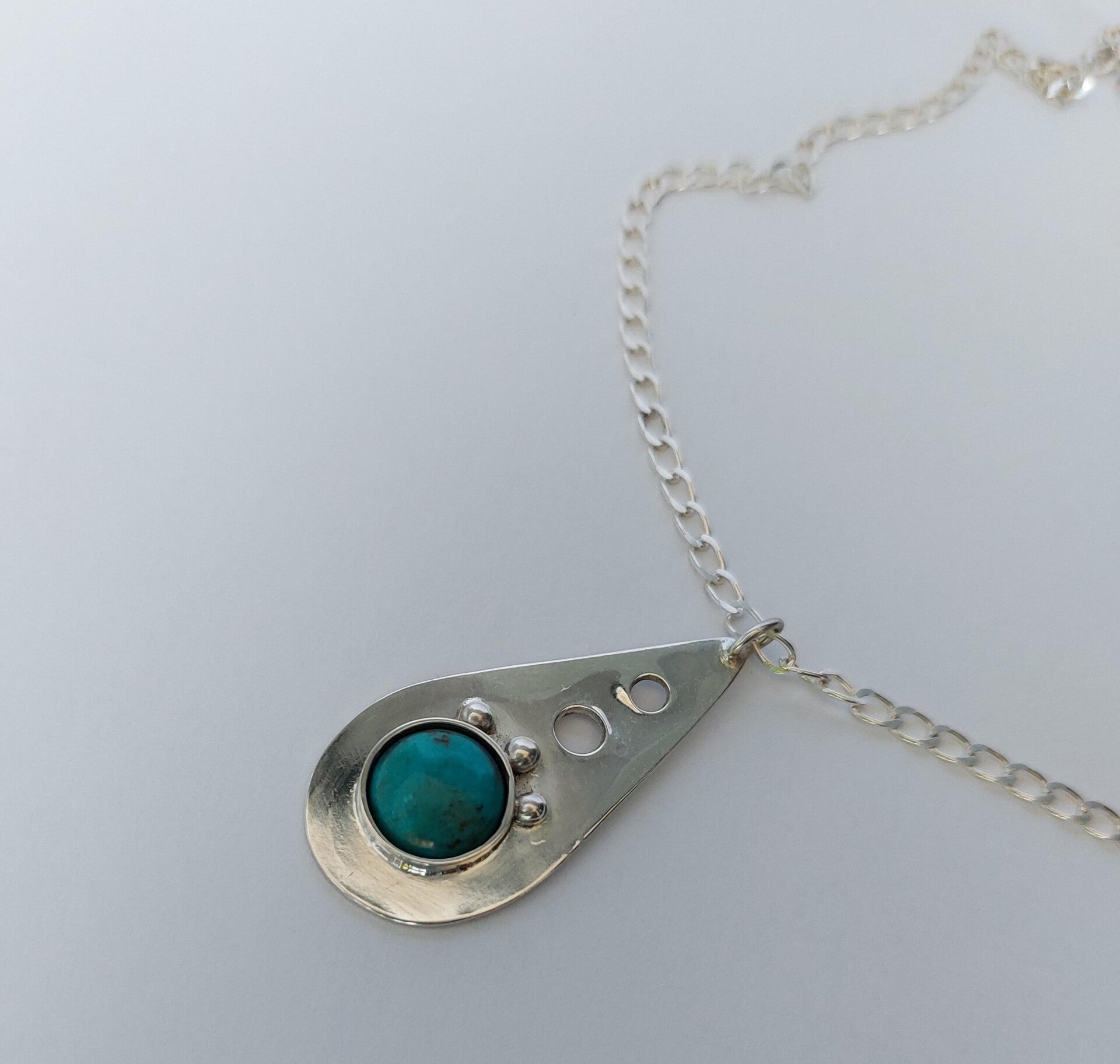 Grote zilveren hanger met een Turkoois erin verwerkt. Echte turkoois is moeilijk te verkrijgen dus een unieke hanger.