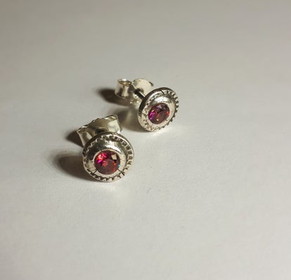- Bewerkte zilveren oorknopjes met saffier kleurige steentjes erin verwerkt.