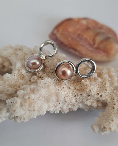Zilveren oorbellen met stekers. Er is een bijpassende ring beschikbaar.