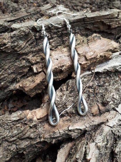 Lange zilveren oorhangers. Ongeveer 7 cm lang